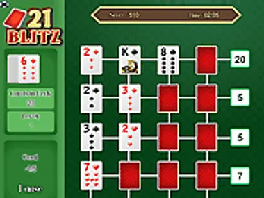 Create rows and columns that add to 21 using the rules of Blackjack.