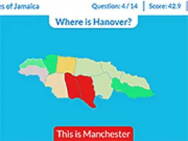 Parishes of Jamaica는 자메이카 지리를 배우는 데 도움이 되는 교육용 게임입니다. 패리쉬가 무엇인지 모르신다면, 자체 지방 정부를 가진 행정 구역입니다. 자메이카에는 14개의 패리쉬가 있으며, 금방 외울 수 있습니다. Saint James, Trelawny, 또는 Portland가 어디에 있는지 아시나요? Kingston이나 Saint Andrew는요? 이 자메이카 지역들을 모르거나 들어본 적이 없다고 해도 걱정하지 마세요. 이 지도 게임은 플레이하면서 가르쳐주며, 모든 점수를 지키도록 도전합니다. 자메이카의 모든 패리쉬를 외울 때까지 이 게임을 플레이하세요. 자메이카에 대한 재미있는 사실: 모든 패리쉬는 해안선을 가지고 있어 내륙 지역이 없습니다.